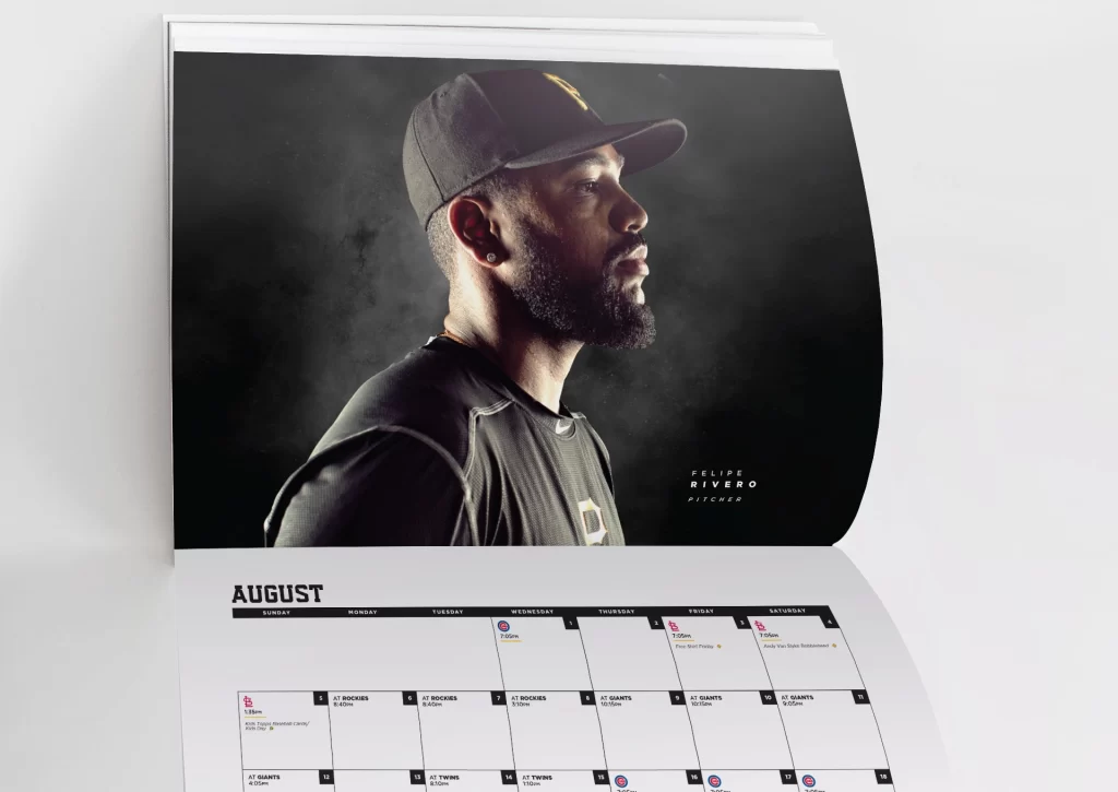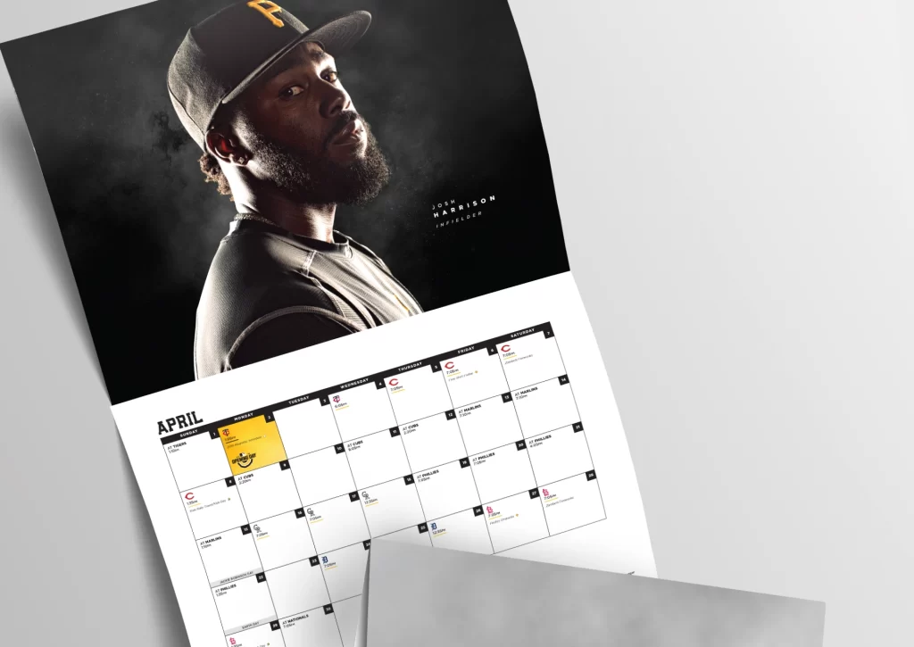 Every year, the Pittsburgh Pirates release a calendar for fans at both PiratesFest and the home opener. For this year’s edition, the creative goal was to showcase players with a bold, intense presence set against a moody backdrop. We aimed to portray the roster as powerful to reflect the team’s competitive energy and give the calendar a striking, elevated aesthetic.